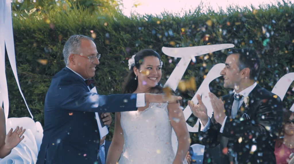 Comenzaba un tranquilo día de verano. Se respiraba calma y alegría nerviosa en la casa de los novios. Isabel e Israel celebraron su boda junto a los suyos en un lugar muy especial, la casa de los padres de Isabel, bajo el sol de julio. Tras la ceremonia civil, pasaron al cóctel en el mismo jardín con el fresco olor del césped y el brillo de la piscina.